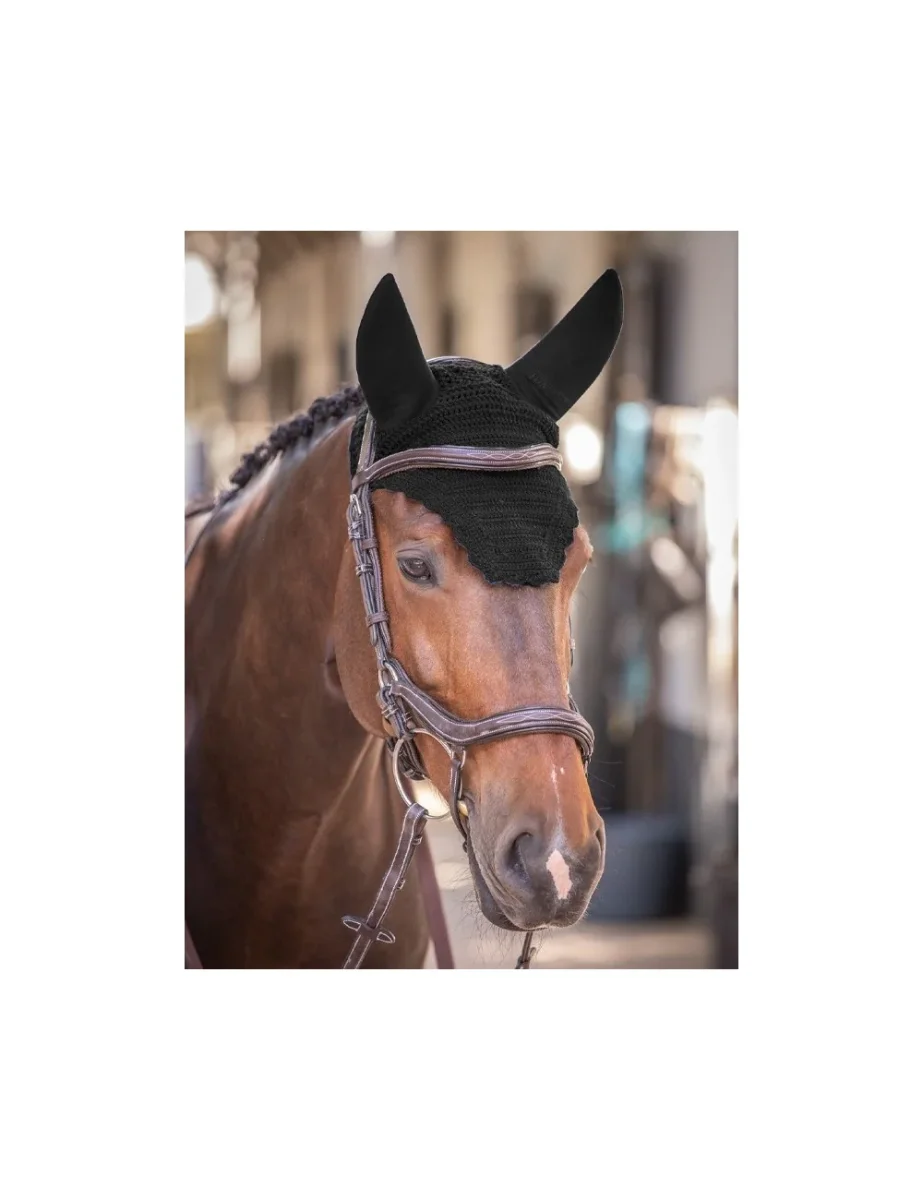 Ce bonnet est un accessoire essentiel pour tous les chevaux gênés par les insectes et distraits par les bruits extérieurs. Le bonnet Jump’In anti-bruit protège le cheval de tous ces parasites extérieurs et favorise la concentration et le calme du cheval grâce à ses oreilles épaisses en neoprène. Le bonnet pour chevaux Jump’In est tricoté à la main avec une petite broderie sur l’oreille gauche , les oreilles sont en tissu épais et élastique ce qui lui permet de s’adapter à de nombreuses tailles différentes. La partie sous la têtière est plus large de façon à maintenir le bonnet sous la têtière.