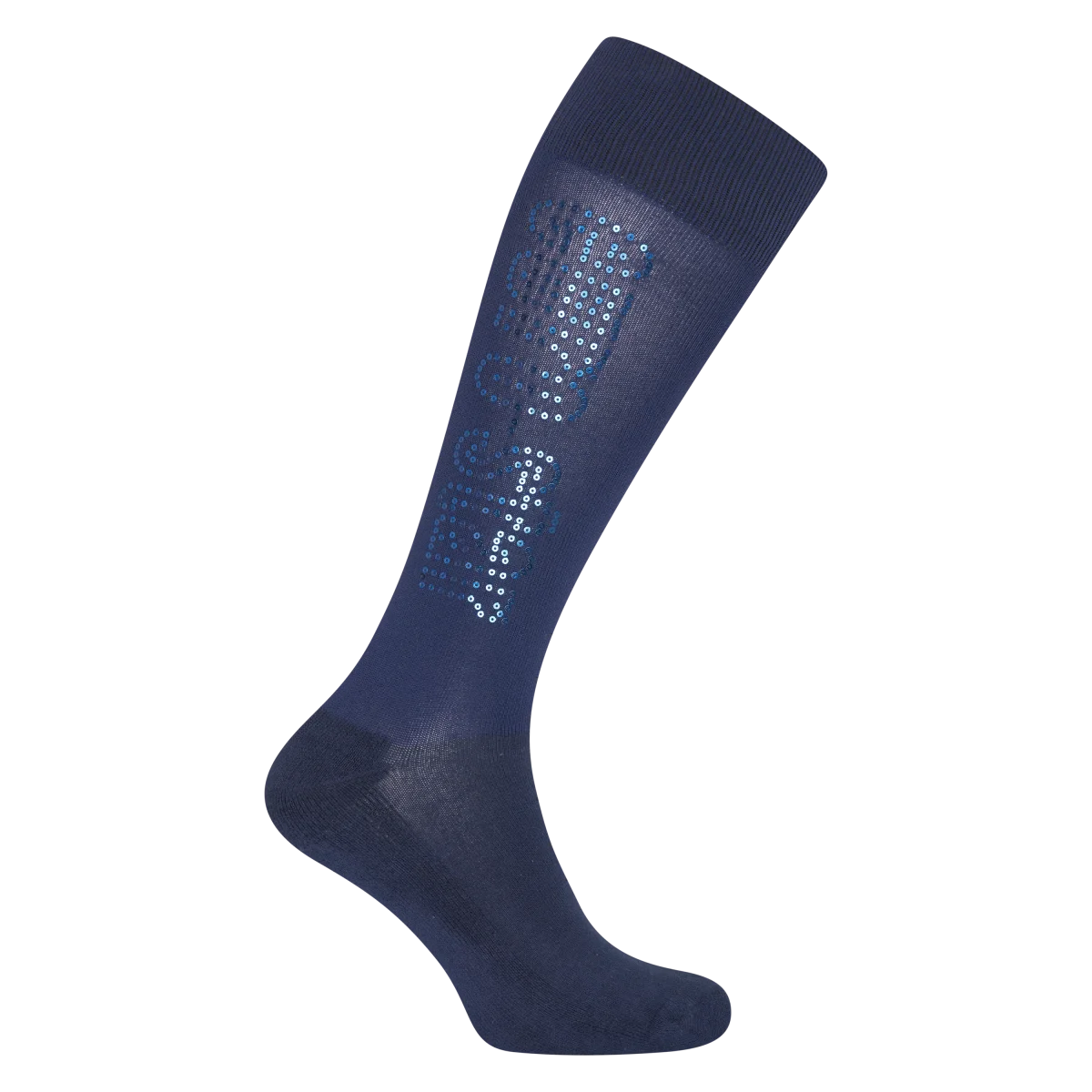 Chaussettes d’équitation antibactériennes pour femmes jusqu’aux genoux avec côtes douces et motif Eurostar pailleté au niveau du mollet pour un confort et une adhérence supérieurs à chaque sortie.
