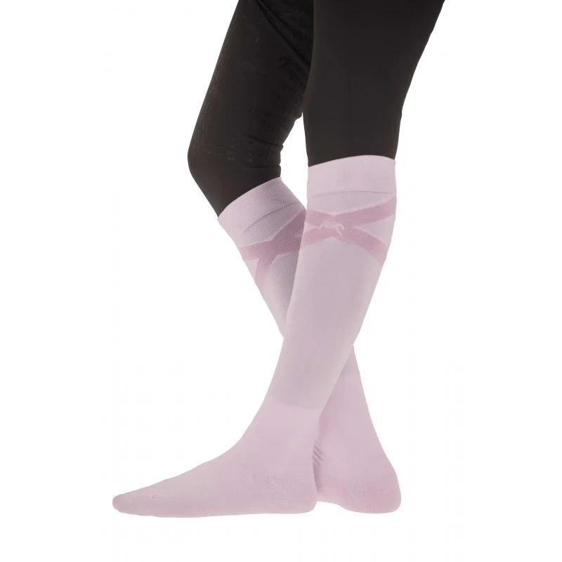 Chaussettes d’équitation Gummy des collections Pénélope ornées d’une croix argentée rehaussée du logo Pénélope. Spécifiquement étudiées pour la pratique de l’équitation. Stretch, elles montent jusque sous le genoux. Elles sont fines et se glissent facilement sous des bottes ou des chaps.