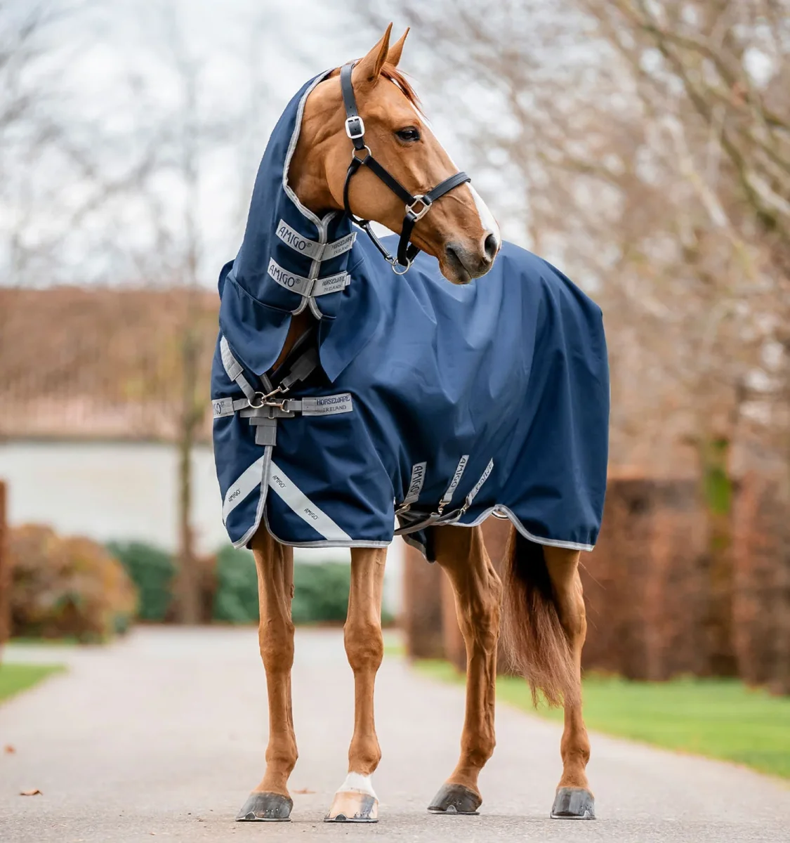 La Couverture d’Extérieur Intégrale Amigo® 1200D 150g offre une protection complète du cou à la queue, idéale pour les chevaux fins avec un haut garrot. Le design avec couvre-cou intégré réduit la pression sur le garrot et améliore le confort.