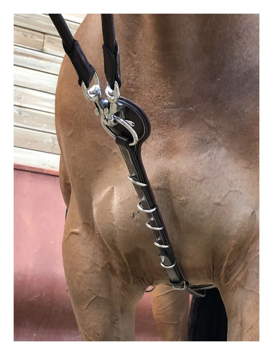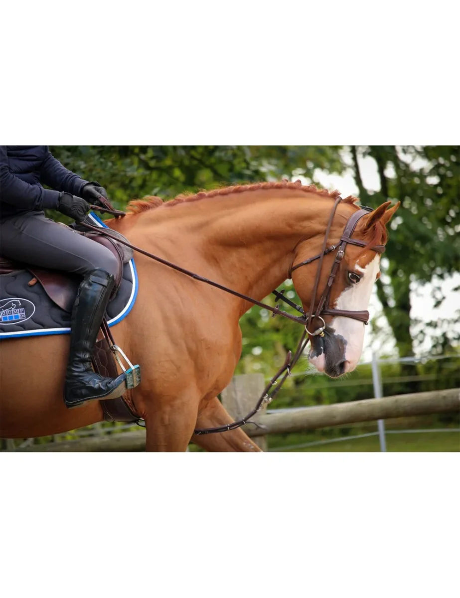 Pratique et élastique, cet enrênement à double utilisation (monté ou longé) permet d’orienter l’attitude des chevaux et poneys.