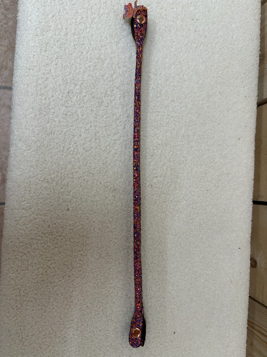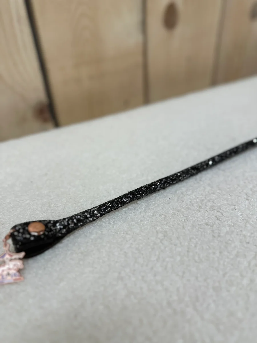 Frontal en cuir tannage végétal enrobé de notre galon disco noir ou multicolore. Petite médaille Ju et Pa sur le côté.