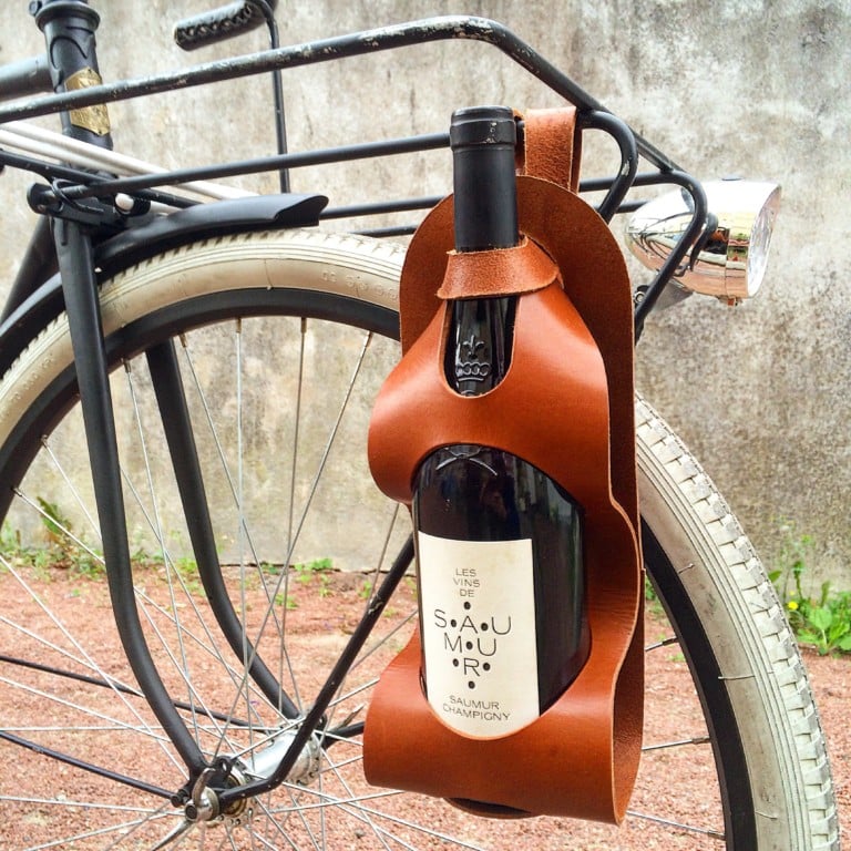 Accessoire de bouclage d’une bonne bouteille sur une belle bicyclette.