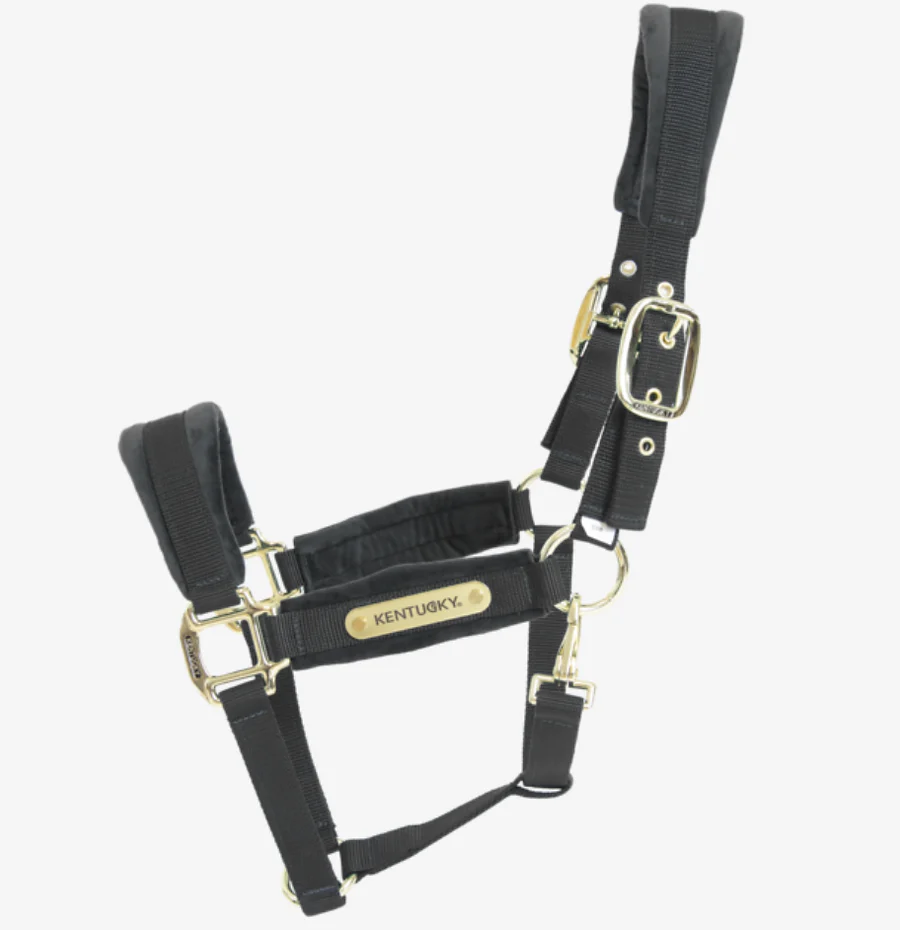 Le licol est fabriqué à partir d’un nylon résistant, pour assurer la sécurité de votre cheval. Le nez, les joues et la têtière sont renforcés par un rembourrage en velours. C’est très doux au toucher et confortable à porter. Le licol se ferme avec un mousqueton en laiton doré et est réglable des deux côtés de la têtière pour un ajustement parfait.