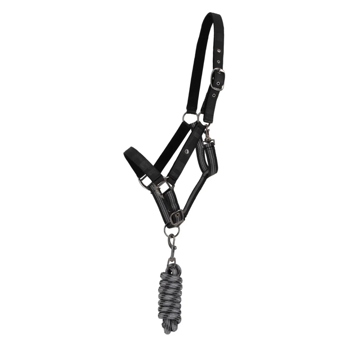 Licol rembourré de la collection hiver, décoré avec de belles couleurs. Il est doté de luxueuses ferrures noires et est livré avec une longe de couleur assortie et un sac en plastique réutilisable avec fermeture éclair.