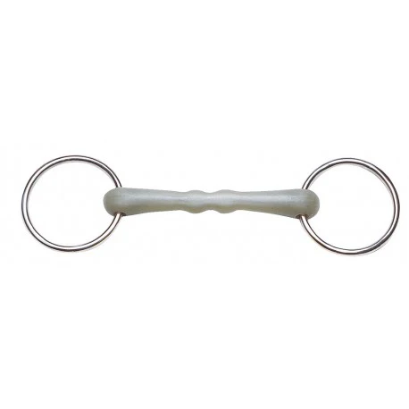 Embouchure droite « Flexi » parfumée à la pomme, anneaux inox. Pour le débourrage ou pour le travail à la longe.