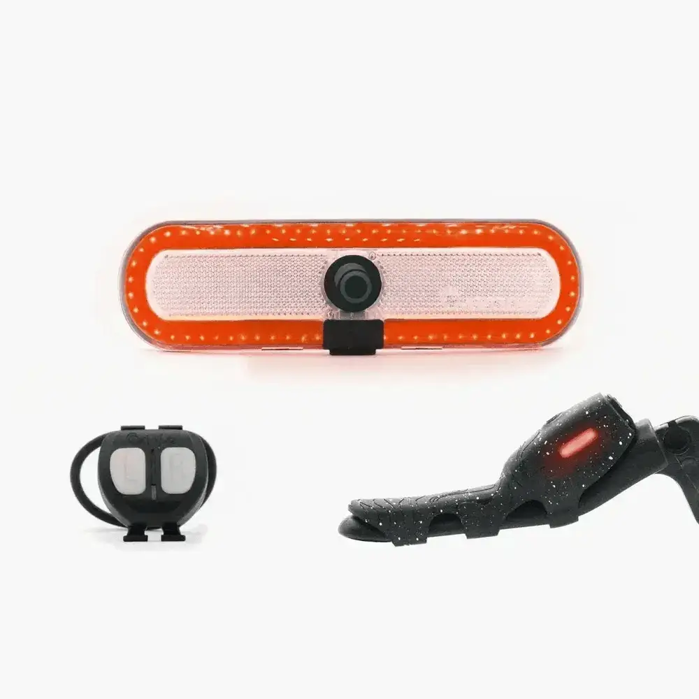 OxiTurn Starter vous offre non seulement un éclairage de position rouge, mais aussi un clignotant orange à la fois à droite et à gauche, situé aux extrémités de l’éclairage. Et pour une utilisation encore plus pratique, il est pilotable à distance grâce à une télécommande intégrée au guidon