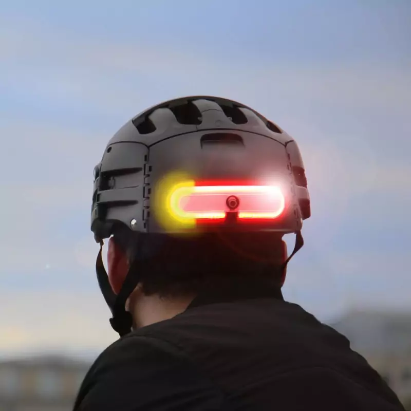 Eclairage de casque amovible OxiTurn + brake Starter est doté de clignotants directionnels pilotables via télécommande au guidon. Il offre une visibilité accrue pour les cyclistes (urbains). Il augmente ainsi leur sécurité sur la route.
