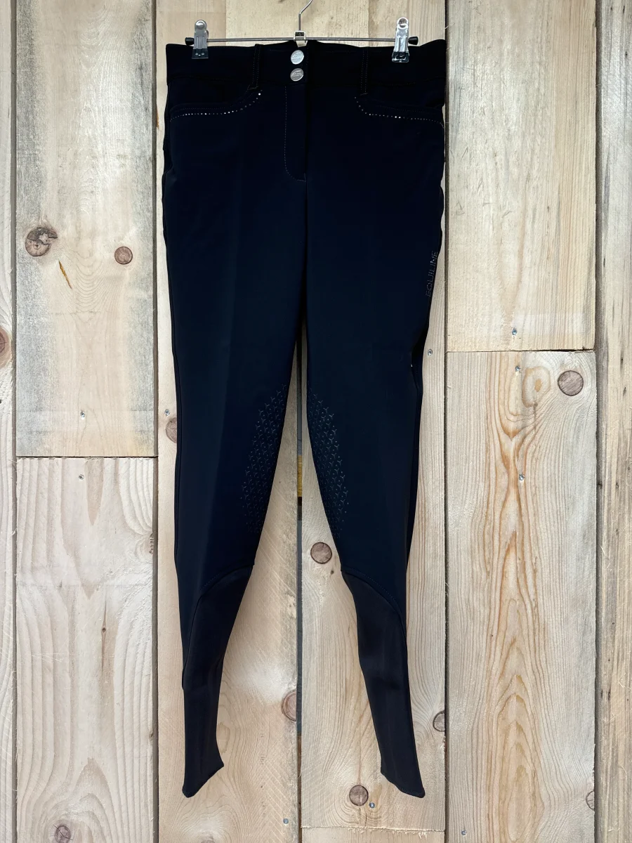 Soyez confortable toute l’année grâce à la technologie B-MOVE toutes saisons du pantalon taille haute knee grip pour femme. Ce pantalon taille haute garantira votre confort et une tenue parfaite. Doté d’un système d’adhérence au genou en « y » et de strass ton sur ton sur les jambes. Logo en strass Equiline sur le dos. Avec un système de fixation extensible sur le bas de la jambe et une protection solaire UPF 50+, ce pantalon allie fonctionnalité et style.