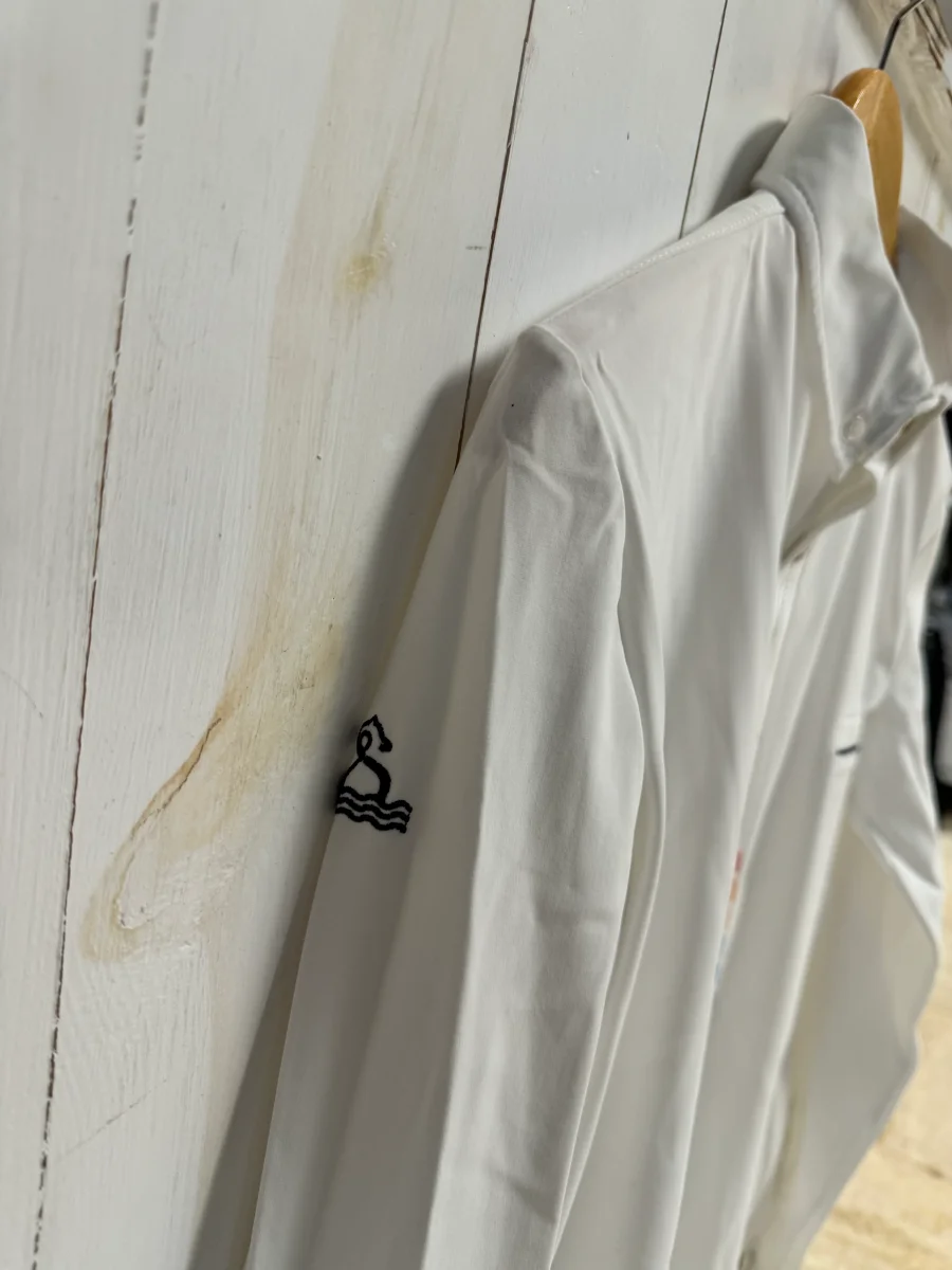Chemise manches longues, corps en tissus technique.