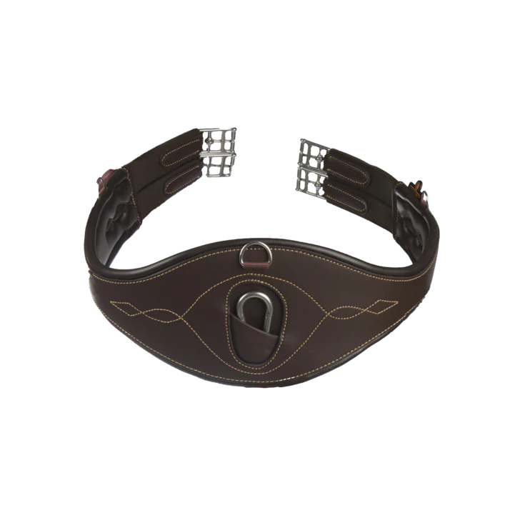 Spécialement conçue pour suivre le mouvement naturel du cheval, cette sangle Anatomic Girth offre autant de confort que de liberté. Elle dégage les épaules et les coudes du cheval, lui permettant de mieux respirer tout en limitant les risques de blessures. La sangle dispose d’une mousse EVA protectrice ainsi que de doubles élastiques triplement renforcés aux deux extrémités pour égaliser la pression, de trois anneaux pour vos différents enrênements et un mousqueton central pour fixer la martingale. La sangle est faite de similicuir, très facile d’entretien grâce à notre spray nettoyant. De plus, le cuir résiste à la machine à laver à 30° (pas de sèche-linge), n’absorbe pas les saletés et la transpiration et est donc durable !