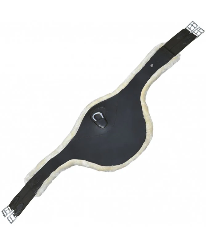 Les sangles mouton sont dotées d’un pad en mouton synthétique anti-frottement, très confortable pour le cheval, surtout pour ceux qui ont la peau sensible. Ce pad est monté sur velcro, pour faciliter le lavage. Le mousqueton central (encastré et plaqué) permet d’ôter et de mettre en place votre collier de chasse d’une seule main. 2 extrémités élastiques. Bouclerie nickelée.