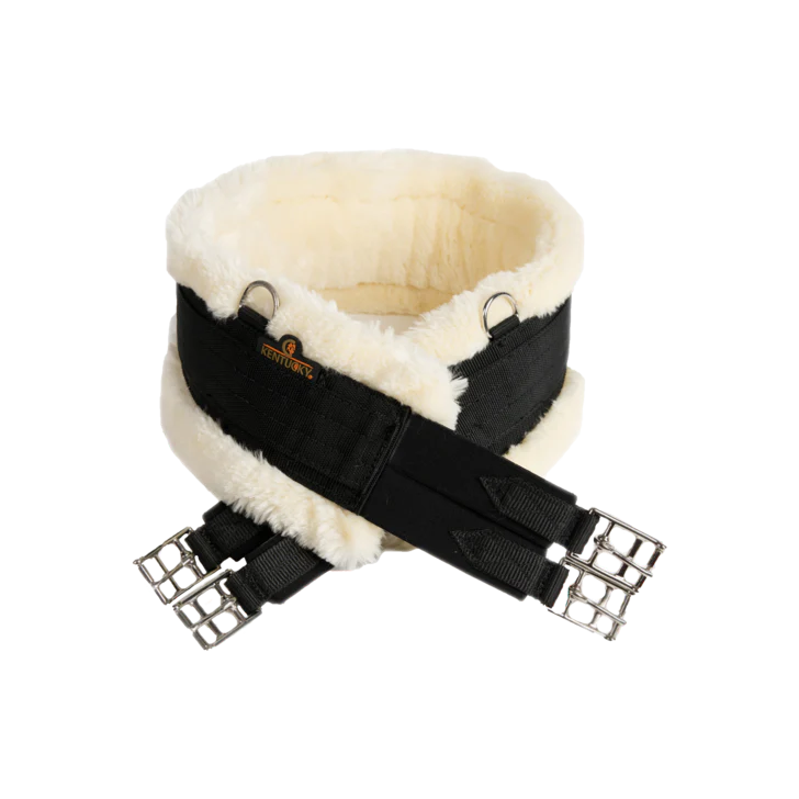 La sangle Sheepskin Girth avec doublure en nylon est l’un de nos produits phare grâce à ses nombreuses qualités. Principalement utilisée lors des entrainements, elle a été développée pour les chevaux ayant la peau sensible car elle offre une sensation douce et confortable. Souple, résistante, et légère, cette sangle dispose de sanglons en acier inoxydable, de doubles élastiques à chaque extrémité pour égaliser la pression ainsi que de trois anneaux en D pour fixer les enrênements. Les élastiques restent solides car ils sont triplement renforcés. Facile d’entretien, le mouton synthétique est spécialement conçu pour résister à la machine à laver à 30° (pas de sèche-linge).