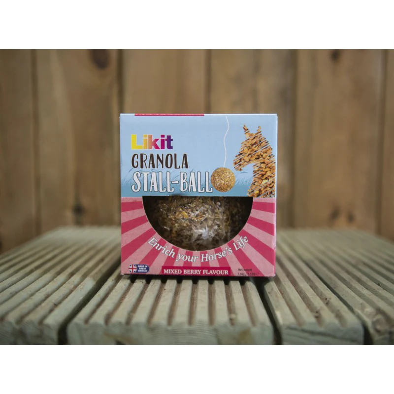 Friandises permettant de réduire l’ennui et le stress des chevaux et équidés au boxe. Peut durer jusqu’à un mois, en fonction du cheval, de l’accroche de la stall-ball.