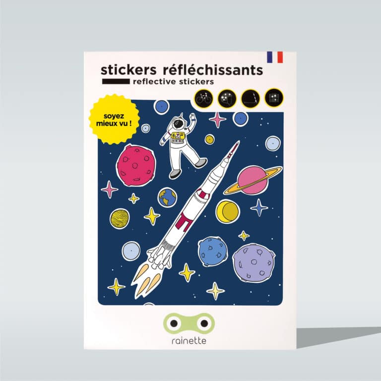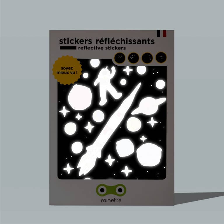 Sticker rétro-réfléchissant à coller sur toutes les surfaces lisses ! Parfaits pour personnaliser casque, vélo, trottinette, cargo, skateboard, valise, … Fabriqué en France et résistant à la pluie et aux UV, il vous permettra d’avoir votre propre style de jour et d’être bien vu de nuit !