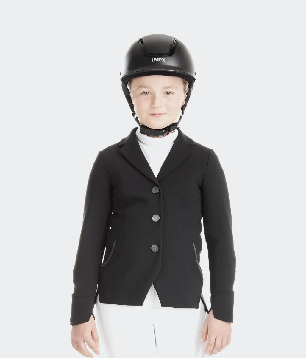 La matière a été sélectionnée pour sa légèreté, sa respirabilité et son élasticité. Avec son design ergonomique, son volume préformé et sa matière 4-ways stretch, la veste Aerotech s’adapte parfaitement aux gestes du jeune cavalier en concours. Comme la veste Aerotech pour adulte, elle dispose de ses propres détails techniques pour répondre aux exigences des concours : ouverture de la veste par 3 boutons pression, un col tailleur et des manchettes ergonomiques pour l’articulation du poignet. «